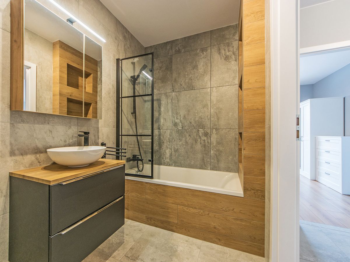 Łazienki z wanną i prysznicem, wc oraz pralką