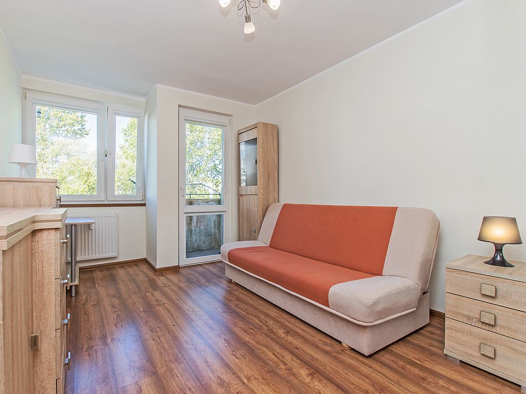 - oddzielnej sypialni z wyjściem na balkon + szafa w zabudowie