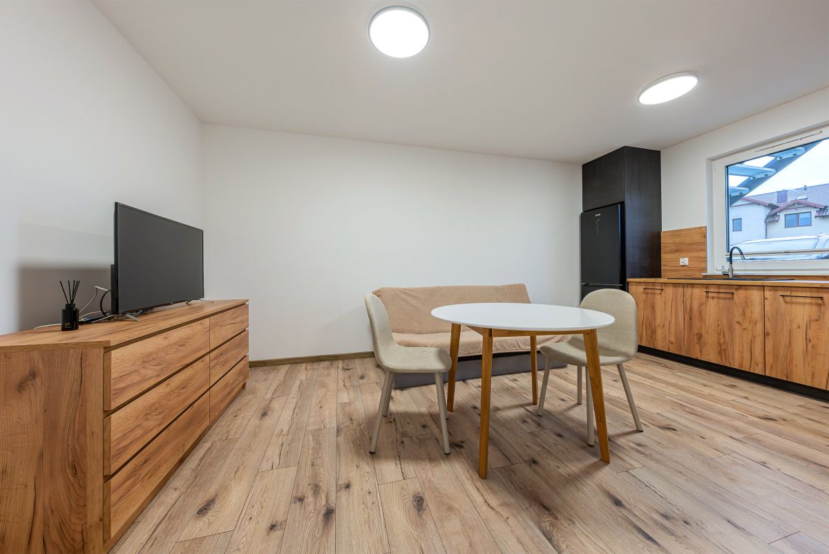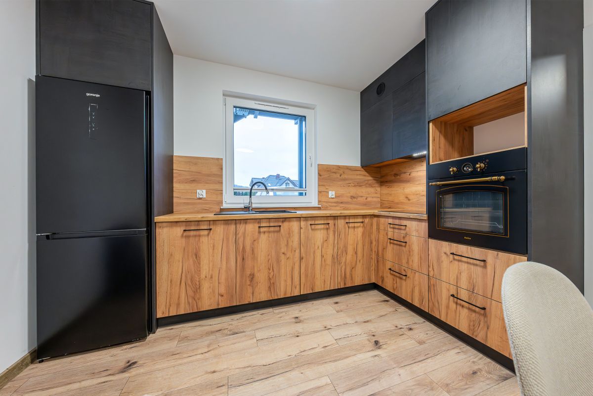 - aneks kuchenny - nowa zabudowa meblowa z wyposażeniem ( lodówka, zmywarka, kuchenka, piekarnik)